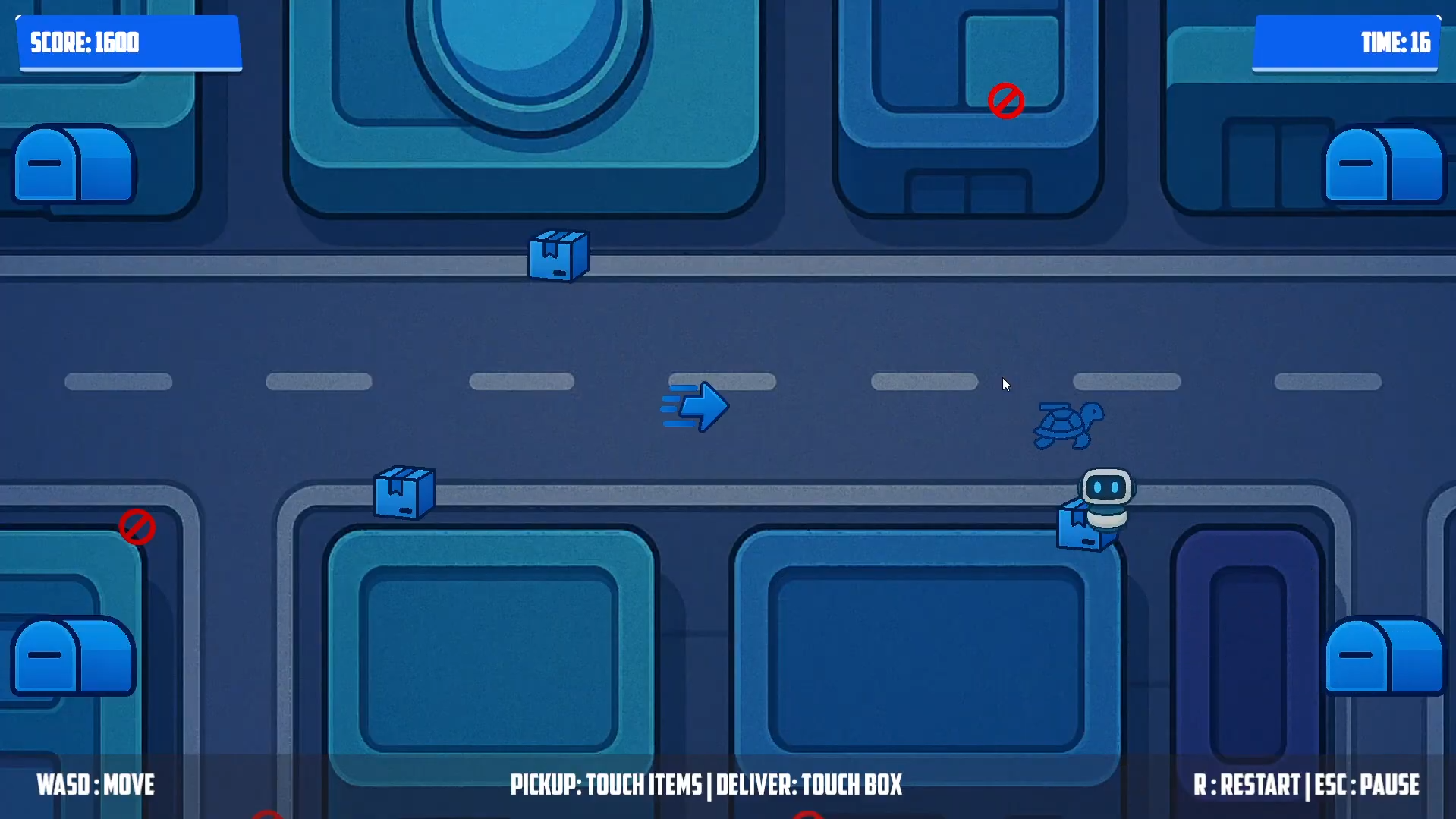 Guide a small cargo bot through a warm, neon-soft sci-fi world. Race the clock, pick up packages, dodge gentle hazards, and drop each parcel at the right pad before time runs out. Easy controls, short runs, satisfying loops. Chill vibes, tight routes, clean feedback.